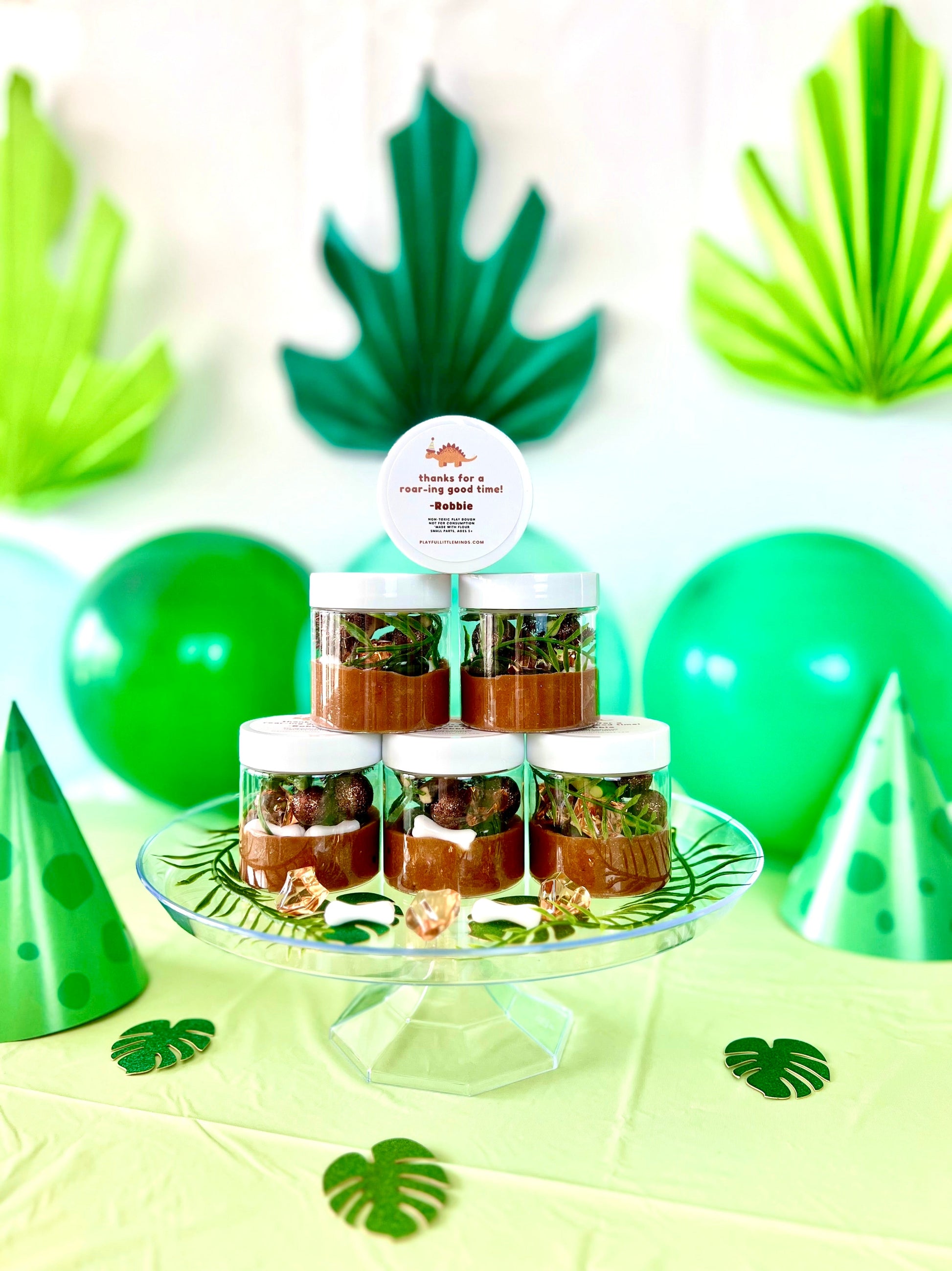Introducing our one-of-a-kind custom party favors for those seeking something unique. Our dino play dough party favors feature 2 oz of all-natural play dough, accompanied by themed objects, providing a sensory experience like no other. Our jars allow your little ones to spread joy and thank their friends for making their celebration so special!